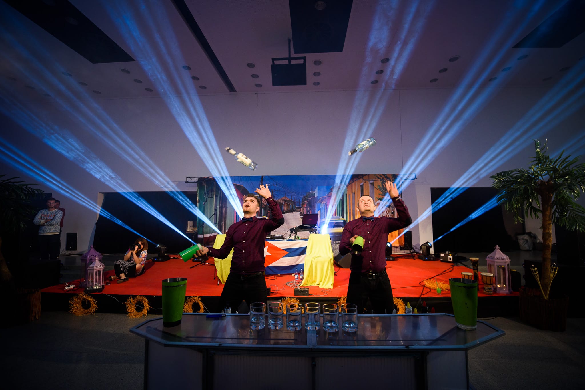 Goście witani byli przez nasze profesjonalne hostessy oraz kelnerów serwujących kolorowe powitalne drinki. Atmosferę fiesty współtworzyli tego wieczoru rozmaici artyści. Był wśród nich rodowity Kubańczyk DJ Angel Onay Vazquez Torres, tancerze salsy Amanda Hounkpatin oraz Miguel Fonseca z Torres Art Studio, bębniarze Balafon Brothers oraz barmani Extreme Bar.