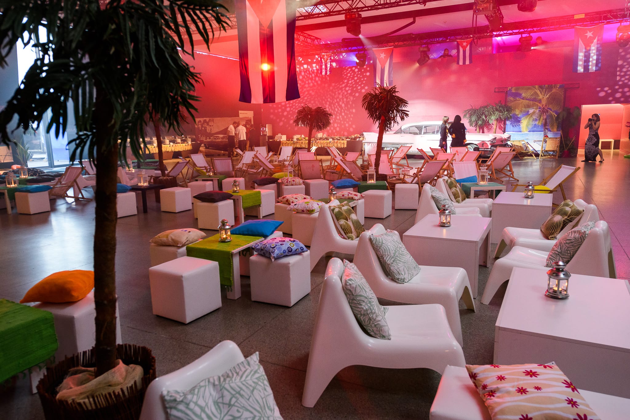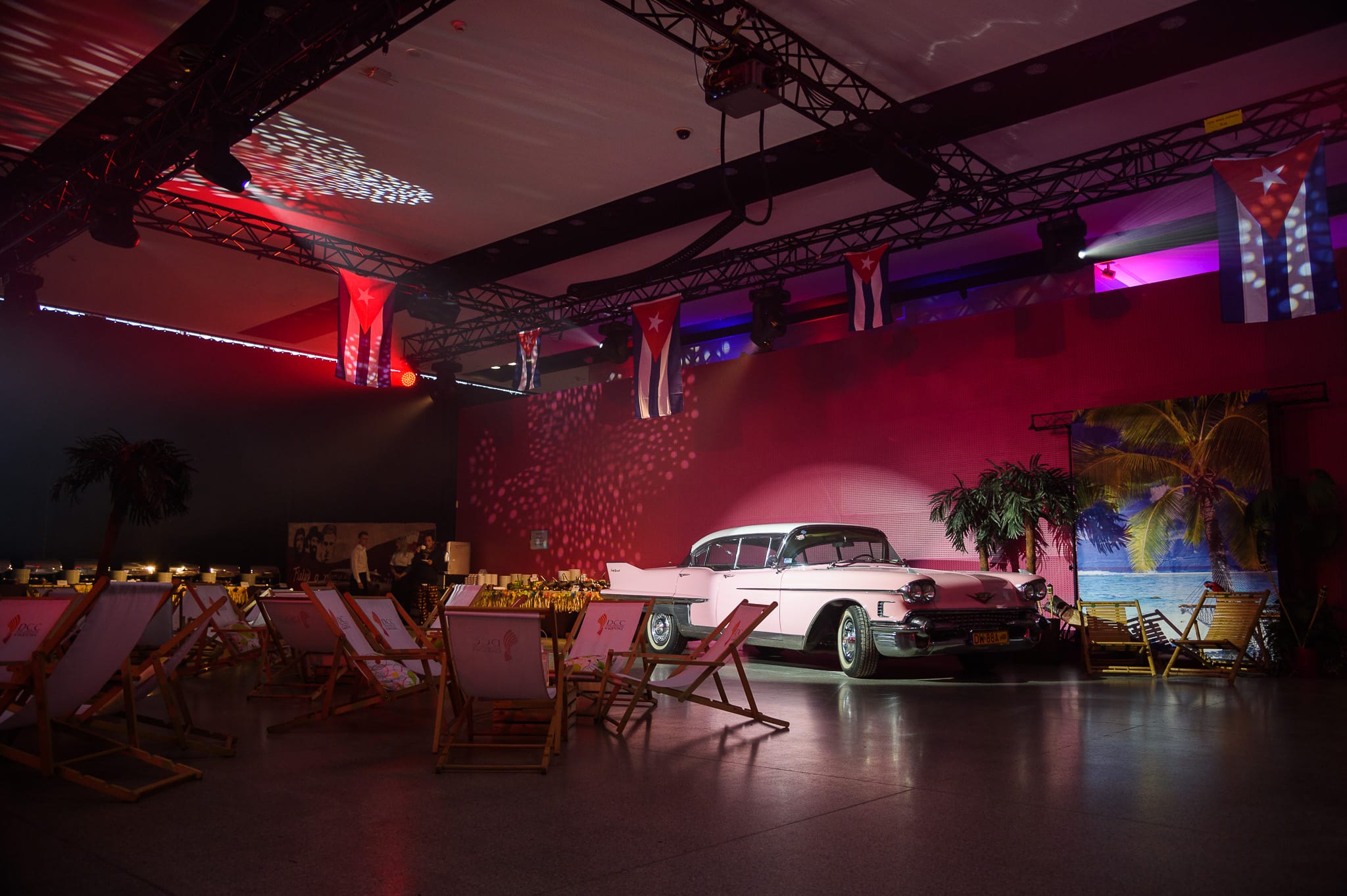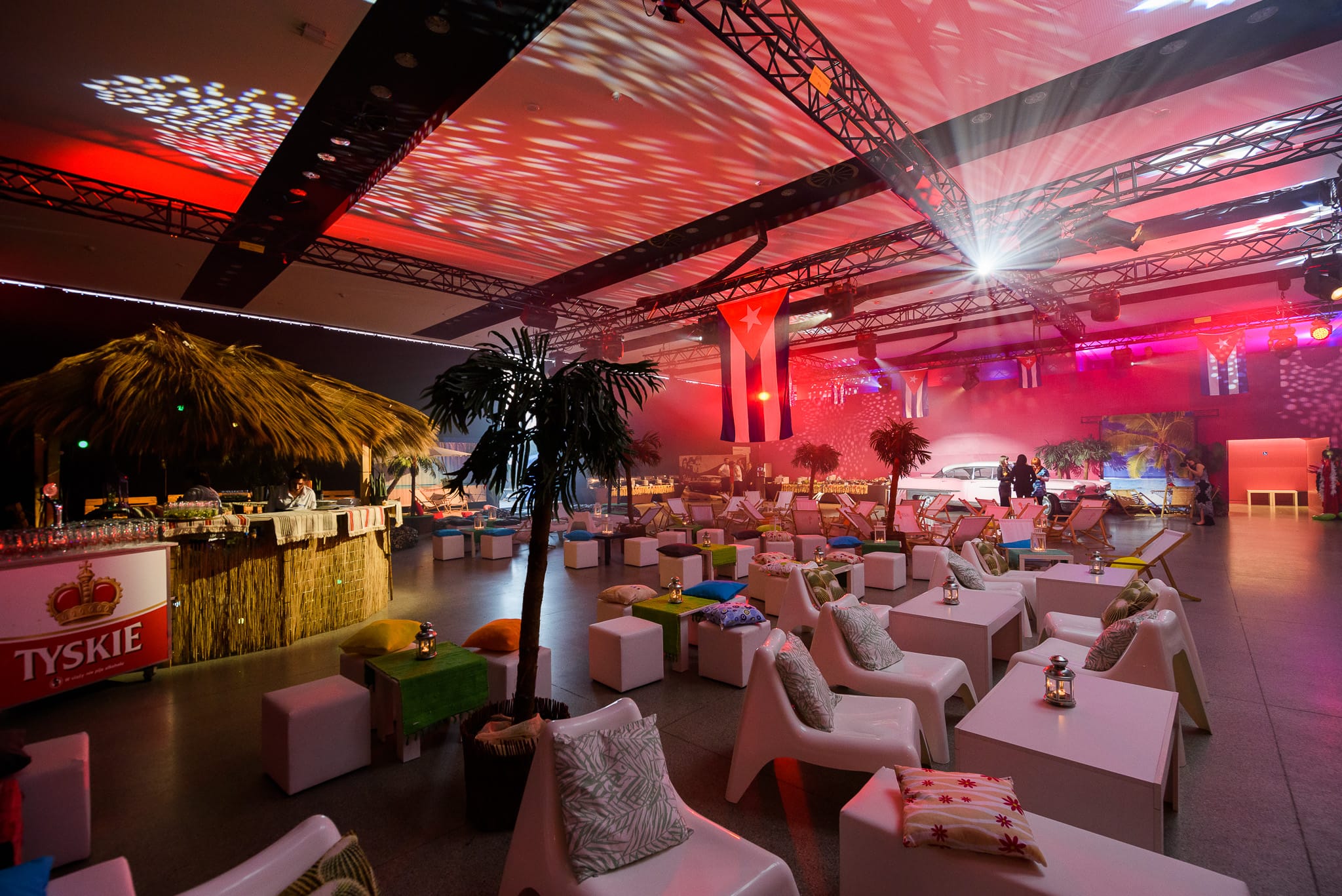 Mimo październikowych chłodów, podczas eventu zapanowała upalna atmosfera karaibskiego lata. Na przekór jesiennym słotom, naszą realizację zatytułowaliśmy „Kubański piknik – Viva la Cuba!”.  Na potrzeby wydarzenia nowoczesna sala została poddana gruntownej metamorfozie. Przygotowaliśmy słomiany bar, leżaki, hamaki. Przygotowaliśmy również kubańskie flagi, palmy i piaszczystą wyspę. Zwieńczeniem był kultowy różowy Cadillac. Tak przekształciliśmy otoczenie w hawański kurort.