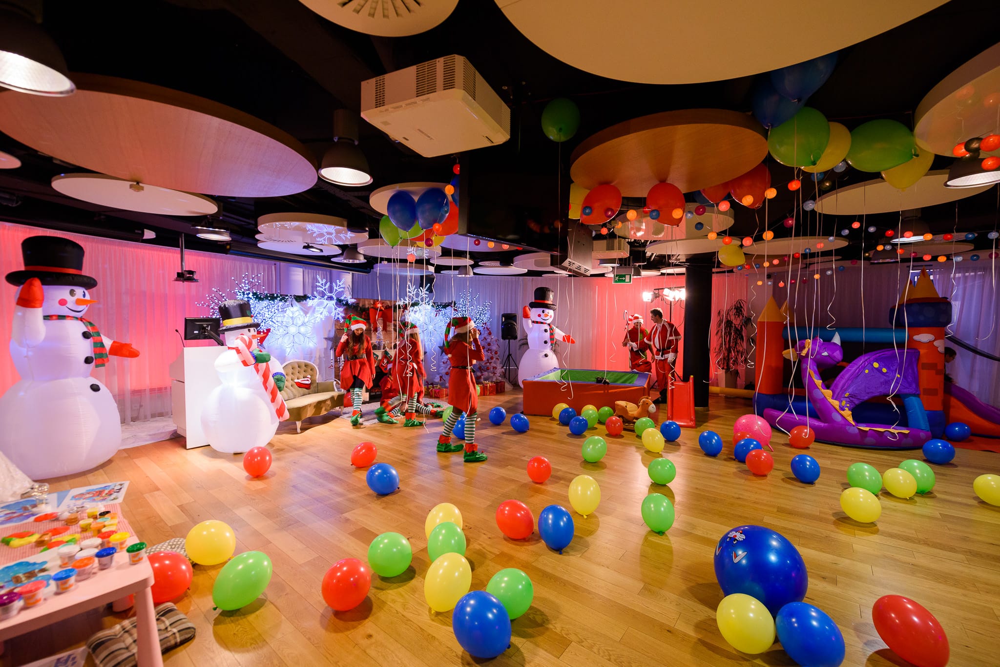 Tym razem spotkanie z mikołajem przyszło nam organizować już w listopadzie. Ze wsparciem Pracownii Centaurea oraz Gaudeo Dekoracje Balonowe przenieśliśmy dzieci z firmowej kantyny do lapońskiej chatki. Mali goście mogli wziąć udział w animacjach Królowej Śniegu. Przygotowała dla nich konkursy i quizy. Dla dzieci, które wolały eksplorować lodową krainę indywidualnie, przygotowaliśmy atrakcje, wśród których znalazły się między innymi: zabawa w dmuchanym zamku i piankowym placu zabaw, tworzenie ozdób choinkowych, malowanie twarzy, budowanie szopek z ciastoliny, degustowanie świątecznych potraw z różnych stron świata czy ozdabianie pamiątkowego „drzewka dobrych życzeń”.