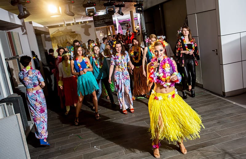 Podtrzymując niebanalność miejsca, które jest salonem płytek i wszelakiej armatury, udało nam się stworzyć prawdziwie hawajską atmosferę. Goście mieli okazję nauczyć się hawajskiego tańca pod okiem zawodowej tancerki. Dano im również spróbować swoich sił w komponowaniu drinków po wcześniejszym pokazie barmańskim. Uczestników eventu obowiązywały hawajskie przebrania. Konkurs na najoryginalniejszą stylizację wygrała uczestniczka przebrana we własnoręcznie uszyty kostium deski surfingowej. Goście chwalili realizację za to, że w żadnym miejscu nie otarła się o kicz – nasze Hawaje były pełne klasy i dobrego stylu.
