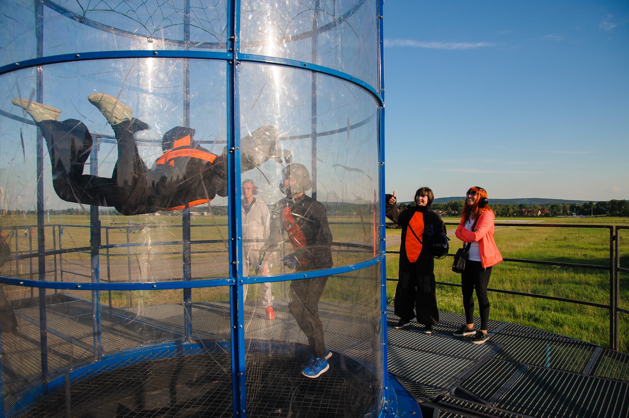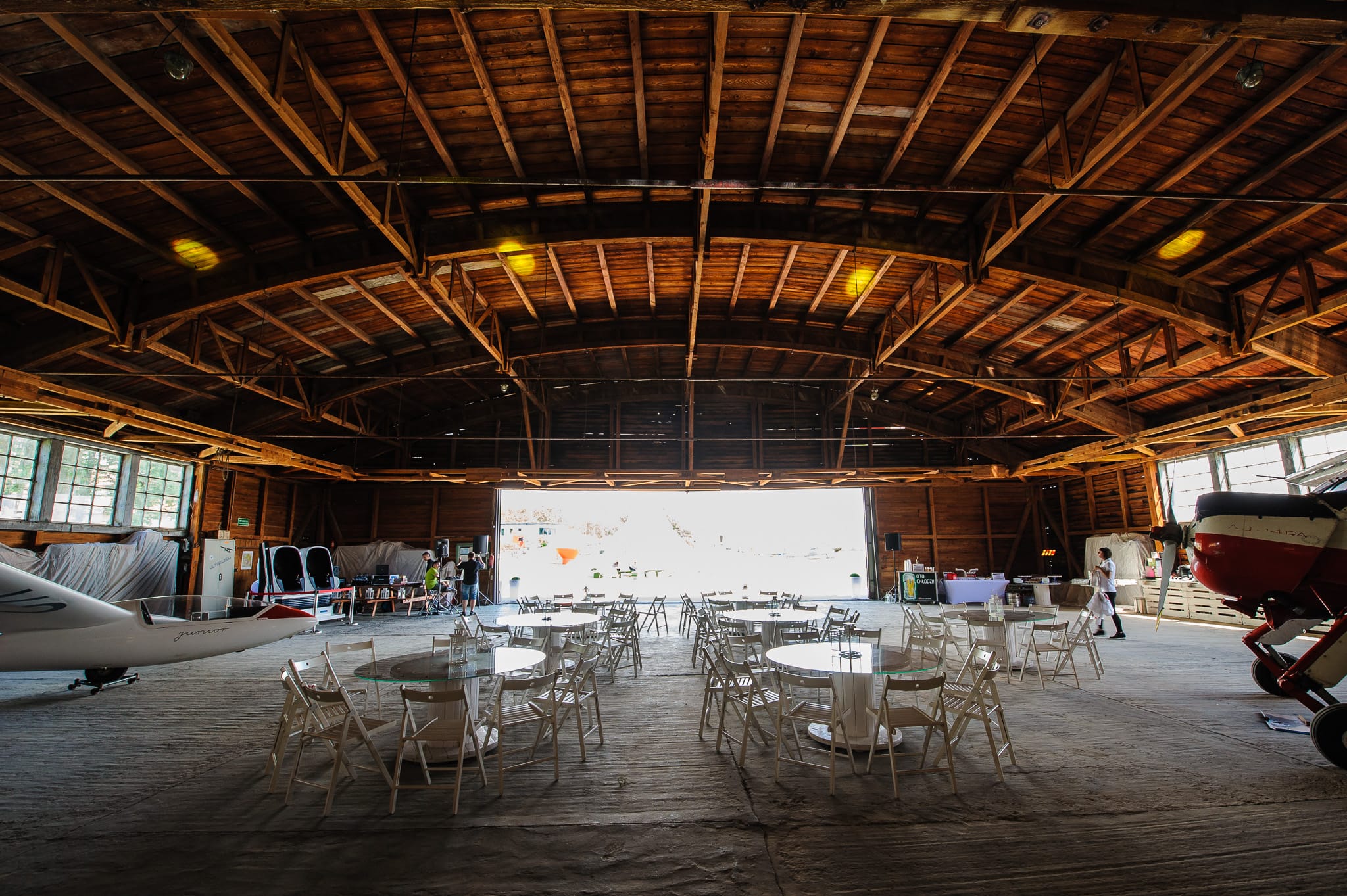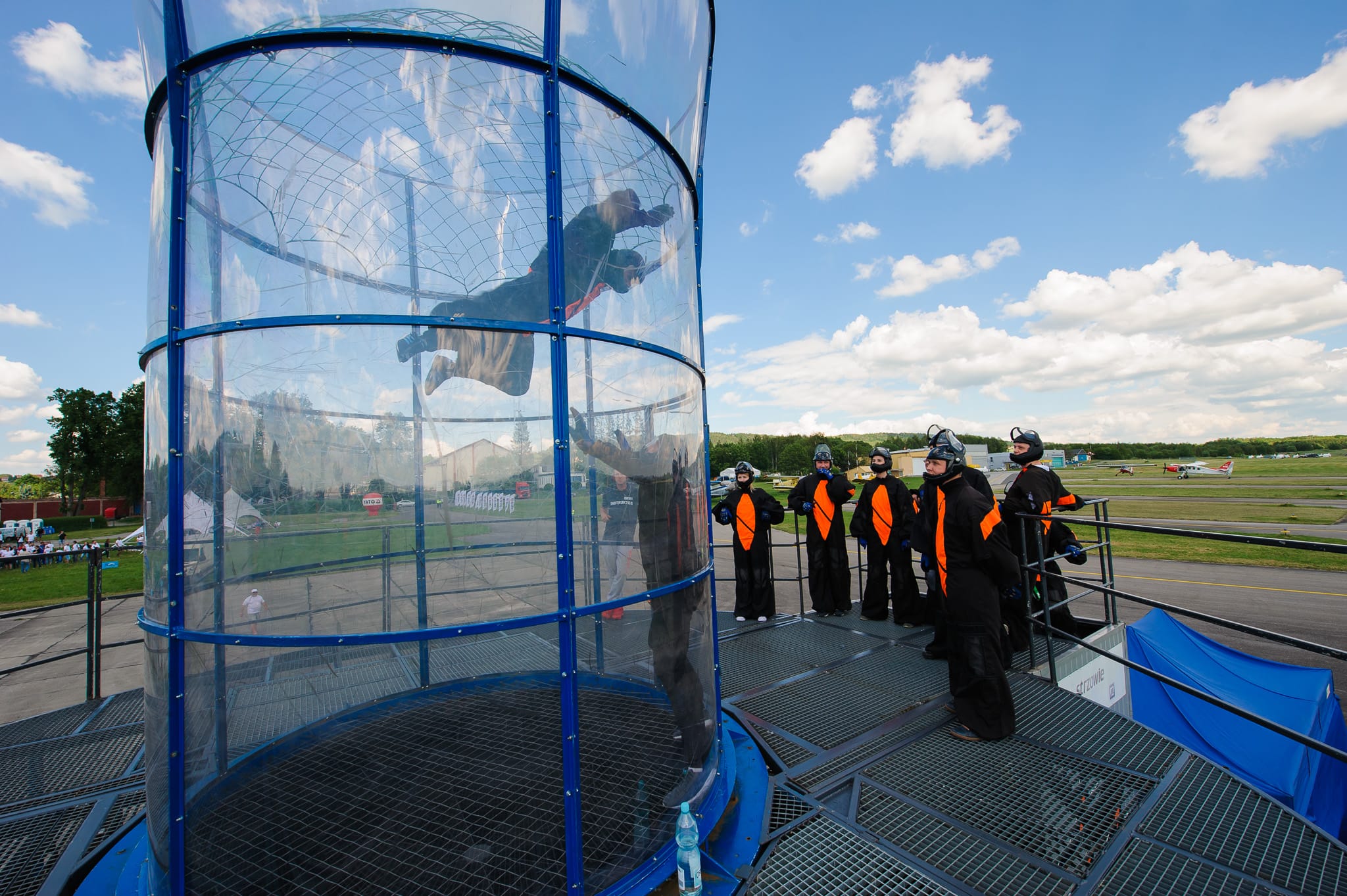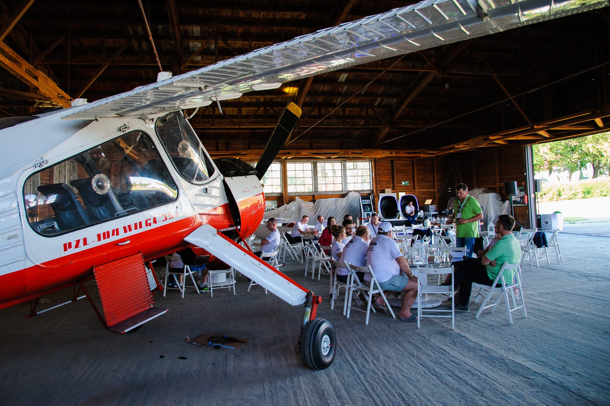 W pierwszym dniu grupa została przewieziona na lotnisko Aeroklubu Kieleckiego, by skorzystać z atrakcji w przestworzach: skoków spadochronowych, lotów szybowcami i samolotami oraz mobilnego tunelu aerodynamicznego. Dla tych, którzy woleli pozostać bliżej ziemi, zamówiliśmy platformę wirtualnej rzeczywistości. Zaś w zabytkowym, drewnianym hangarze lotniczym zaaranżowaliśmy strefę chilloutowo-cateringową.