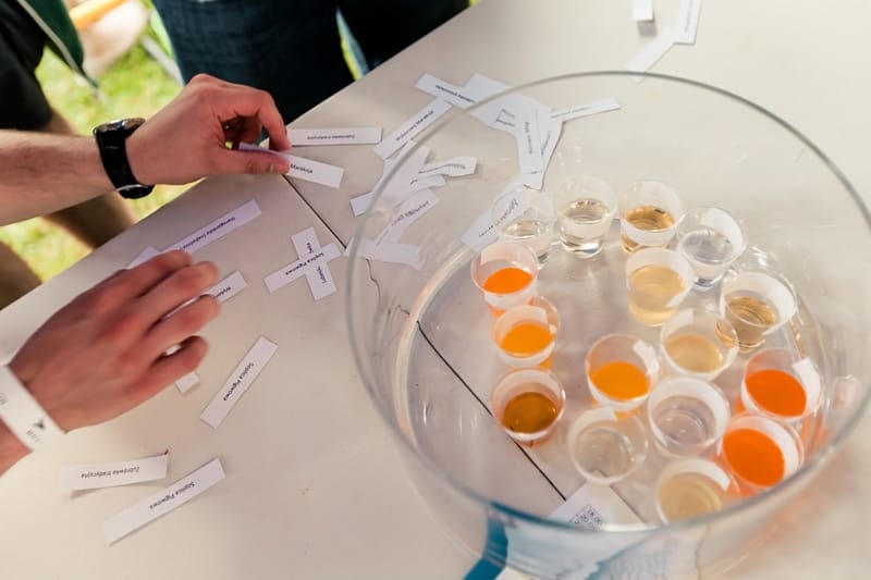 Na przybyłych czekały stanowiska, które stawiały przed nimi rozmaite zadania. Na jednym z nich trzeba było strzelić gola, ale mając na sobie… alko-gogle! W innym miejscu na nitki makaronu nawlekano ustami inny makaron. Goście mieli szansę wykazać się również wiedzą na temat rozmaitych napojów, biorąc udział w ślepym teście smaku.